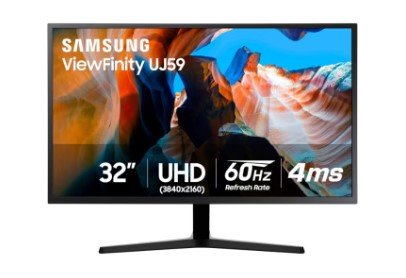 Samsung 32-Inch 4K UHD Monitor, VA Panel, 1 Billion Colors, AMD FreeSync, 3000:1 Contrast, 4ms Response, 60Hz Refresh, HDMI & DisplayPort, Picture-in-Picture (PIP), VESA Mount, Slim Design, Black | LU32J590UQMXUE black